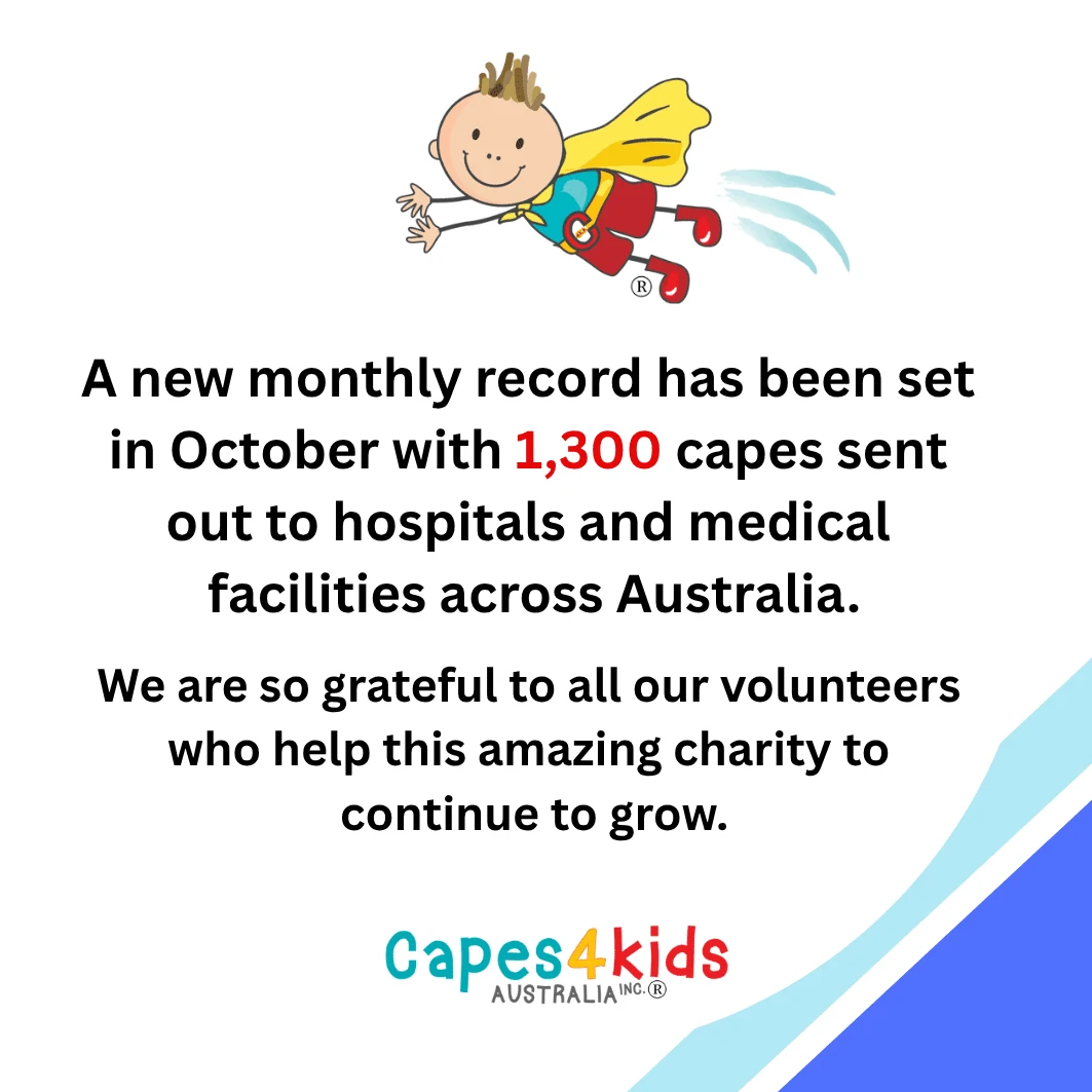 - Thank You!!! My son 6 year old was recently in hospital and given one of your capes, he was so excited and took it to show his class when we got home. I have had people comment on his cape ; and told them about your wonderful organisation.Thank you so much from one happy little man and his family ❤️