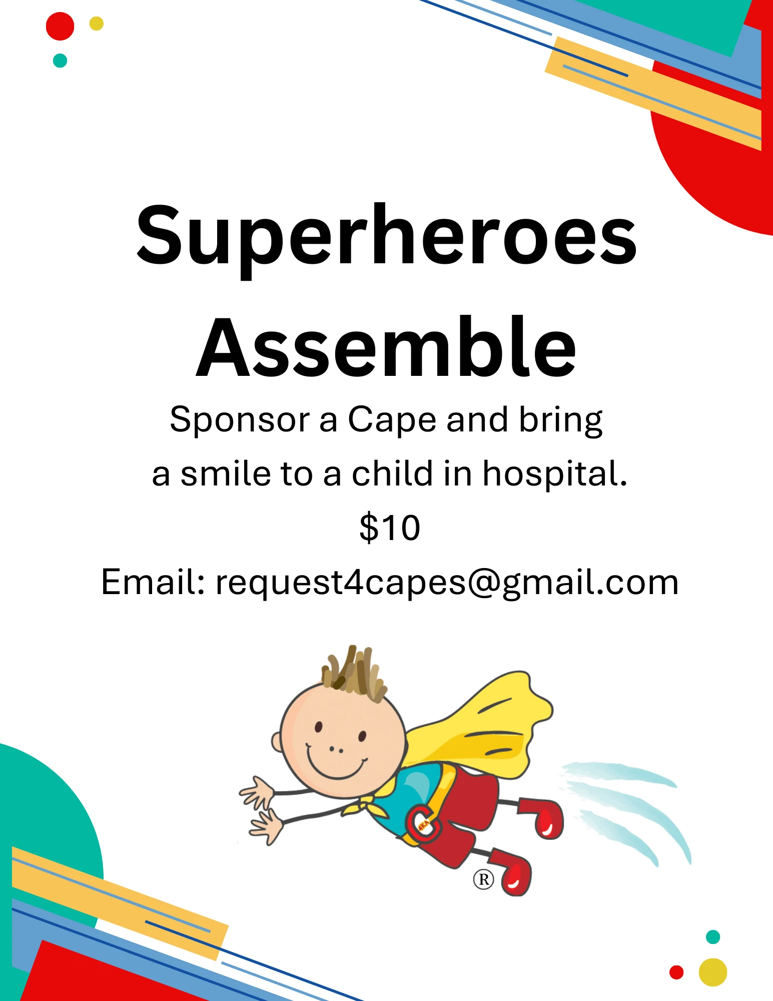 We rely on our supporters to help us raise funds to be able to send capes to hospitals and always make the capes free to children in hospitals!